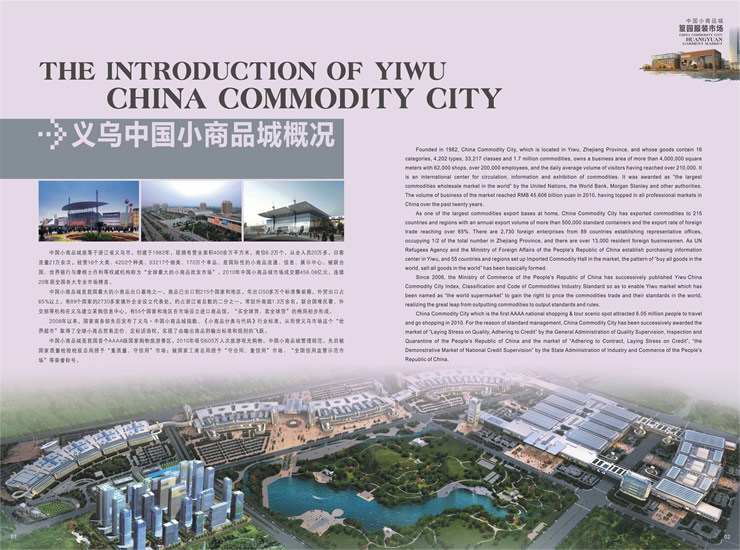 中國小商品城篁園服裝市場地處義烏最為繁華的繡湖商圈,市場總占地117畝,總建筑面積42余萬平方米,總投資14億,余2011年4月份投入使用。篁園服裝市場定位為專業(yè)服裝市場,符合市場國際化、品牌化、多元化的發(fā)展趨勢,有利于提升義烏服裝市場的競爭力,推進(jìn)專業(yè)化、規(guī)?;l(fā)展。 為優(yōu)化行業(yè)布局,強(qiáng)化競爭實力,突出規(guī)模優(yōu)勢,凸顯市場商機(jī),篁園服裝市場1-5樓布局男裝.皮裝;女裝;童裝;牛仔.褲;睡衣.羊毛衫.運動服.襯衫共5個經(jīng)營類別。