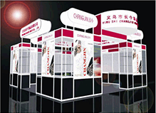 其特點是型材和木質(zhì)結(jié)構(gòu)相結(jié)合。設計旨在以展具的形式美和材質(zhì)美來襯托產(chǎn)品。其效果新穎美觀。 Booth set up with aluminium alloy frame material and wood;Both advantages of the two kinds of materials are jointly taken to meet the edmands of the clients. |